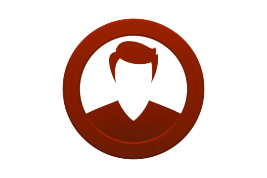 Stylized silhouette icon representing a person with a classic hairstyle within a bold circular frame, ideal for profiles and avatars