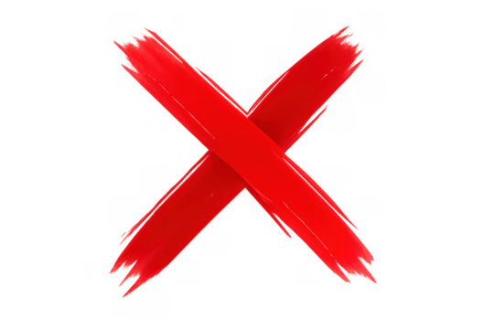 Hand drawing red x mark, indicating error, cancellation, rejection, or incorrect choice on transparent background