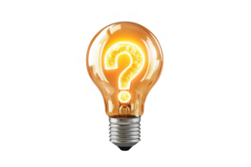 Glowing light bulb illuminated with question mark representing ideas and answers