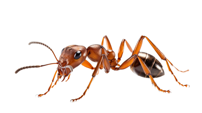 An ant isolated against a transparent background, ideal for biological studies, insect illustrations, or educational content.