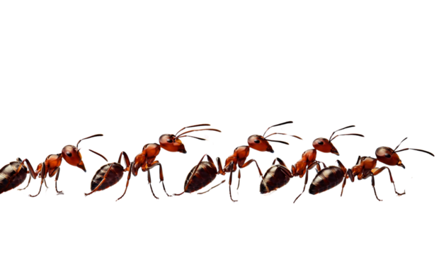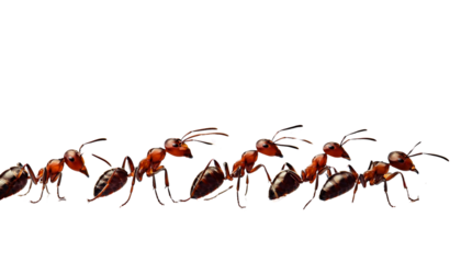 queue of ants isolated on transparent background
