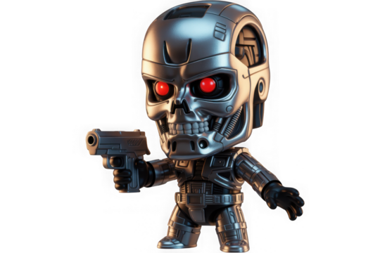 Chibi Cyborg Soldier Holding Handgun Isolated On Transparent Background
