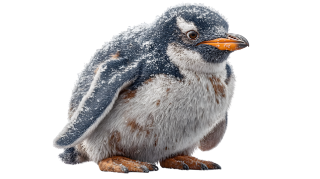 A small penguin chick, adorable and cute, baby animals for animal lovers, a penguin with black and white details, an Antarctic penguin.