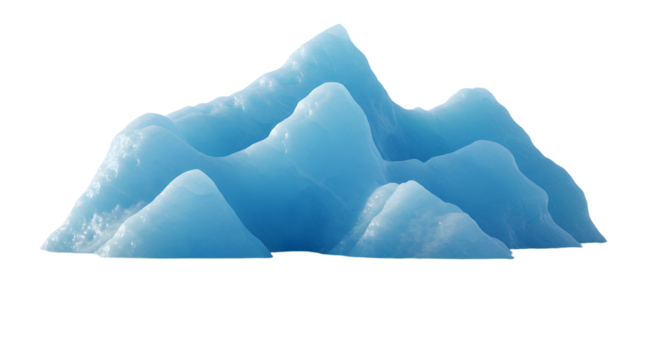 Iceberg floating in clear blue water under bright sunlight on a transparent background, cut out