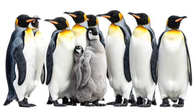 emperor penguins isolated on transparent background.