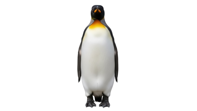 Majestic emperor penguin PNG isolated on transparent background, regal bird with striking yellow markings for wildlife and educational projects