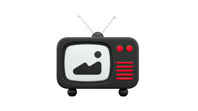 3D Retro television icon with antenna and buttons on transparent background