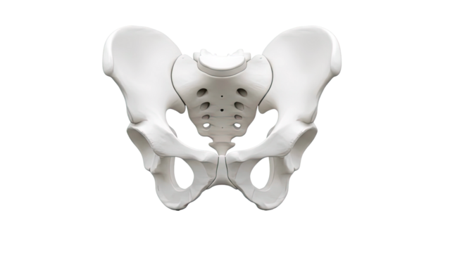 Human pelvis anatomy anterior view detailed bone structure isolated on a transparent background skeletal