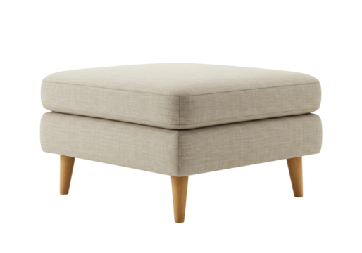 Isolated ottoman, beige fabric upholstered furniture for home living room or hotel lobby