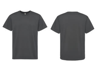 Front and back view of a dark gray t shirt isolated on transparent background