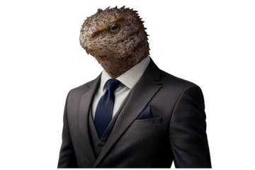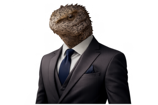 Lizard head and human body combining professionalism with natural instinct, an anthropomorphic reptilian in a business suit