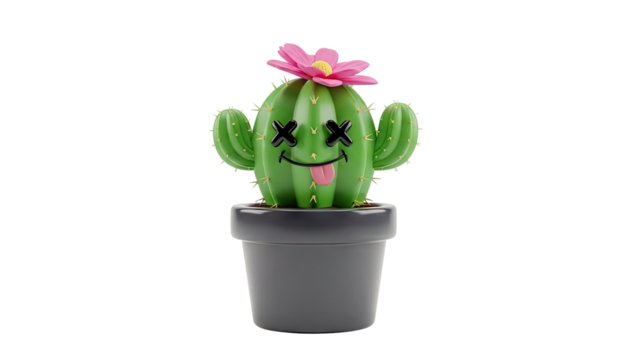 3D Cute cartoon mushroom with face and tongue sticking out on transparent background