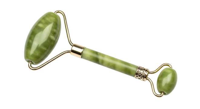 Rose gold facial massage tool isolated on transparent background for beauty and skincare
