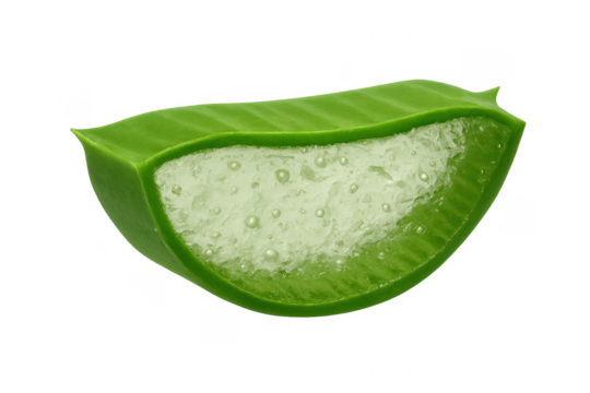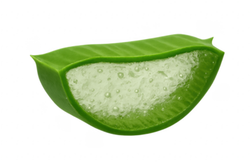 Fresh aloe vera slice releasing its healing gel on transparent background