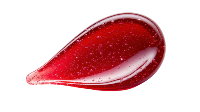 Red gel or serum drop with bubbles on transparent background