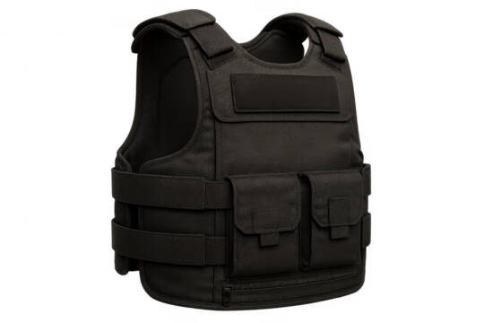 Black tactical bulletproof vest providing protection and safety