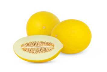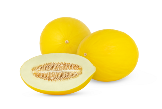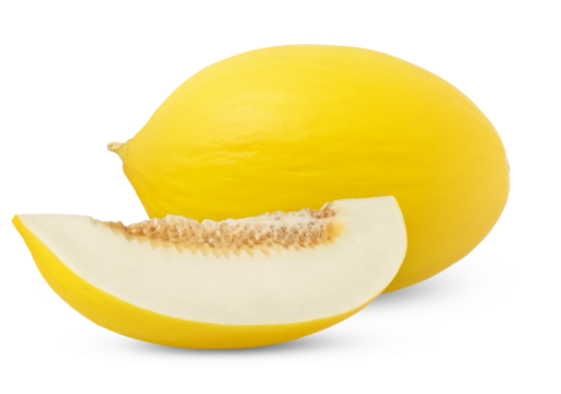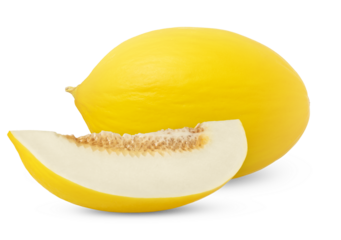 Fresh yellow honeydew melon and slice isolated. Honeydew melon cut in a slice with clipping path.