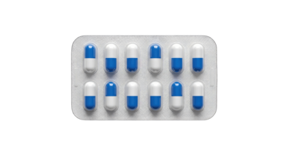 Blue and white capsules and pills isolated PNG, medicine and healthcare concept on transparent background, pharmaceutical products