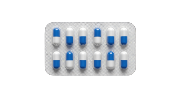 Group of blister packs of prescription medication, antibiotic pills, painkillers, isolated on a transparent background. Healthcare and medical treatment concept