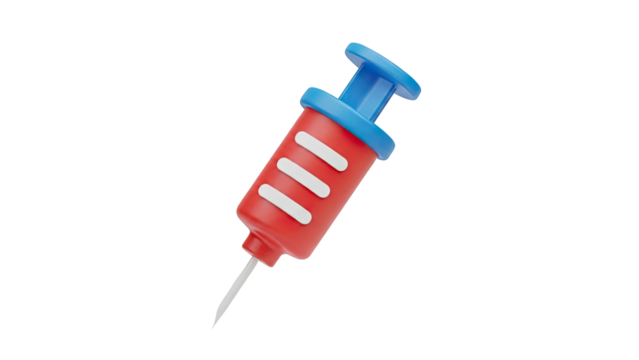 3D Stylized Syringe Icon with Red Barrel and Blue Plunger on transparent background