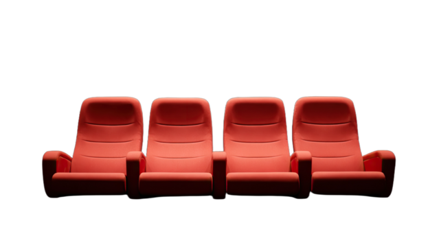 Digital illustration of empty cinema seats on transparent background