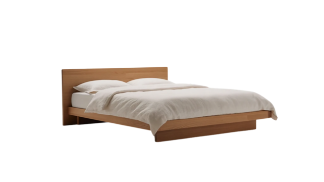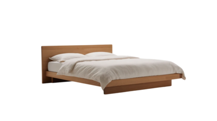 Cozy and luxurious, a comfortable double bed with a white comforter and pillows awaits in a modern bedroom interior