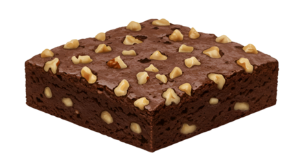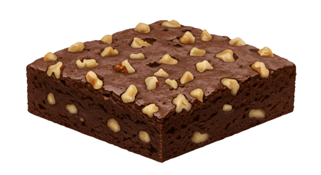 Decadent Brownie: A single, perfectly square brownie, adorned with a generous scattering of walnuts, awaits to delight your taste buds. This is a mouth-watering and appetizing food.