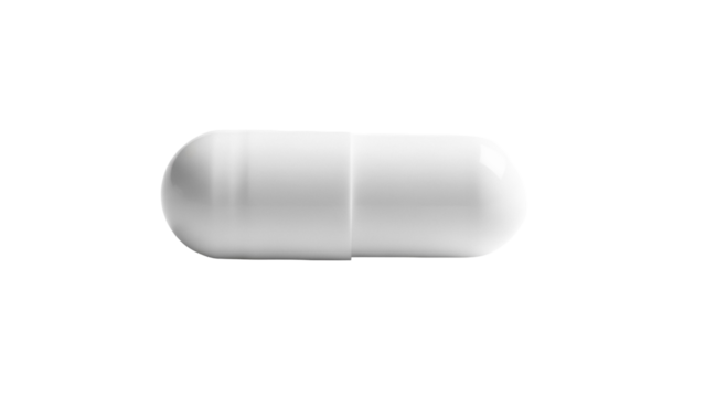 White capsule isolated PNG on transparent background, pharmaceutical medicine for healthcare and medical treatment, single object