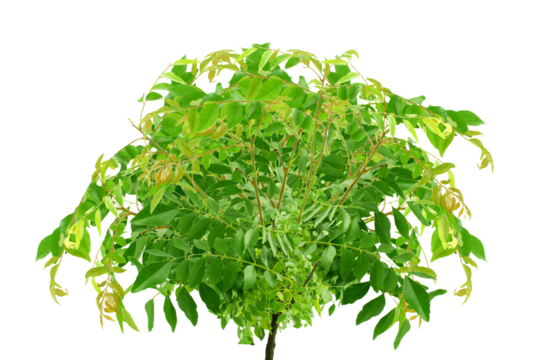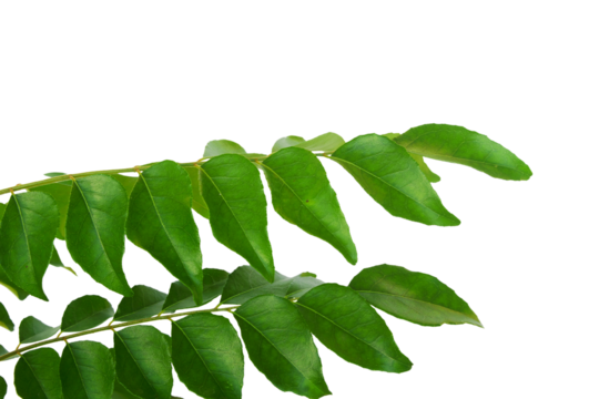 fresh indian spice plant curry leaves or curry patta herb plant use in indian gujarati food like kadhi,vada,rasam,chutney,sambhar,dal and other recipe,cutout in transparent background,png format