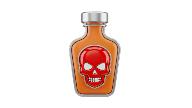 Hand holding a brown glass bottle filled with bright orange pills, symbolizing health and medicine isolated on a transparent background