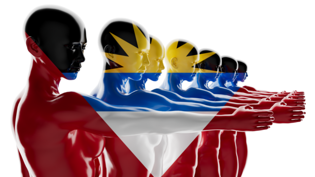 Mannequin Cascade with Transparent Overlay of Antigua and Barbuda Flag