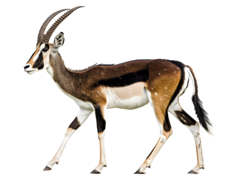 Impalas antelopes isolated on white, transparent. Chobe national Park, Botswana Africa.