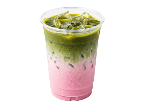 iced strawberry matcha latte in a takeaway cup