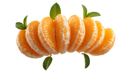 Zesty peeled tangerine segments with fresh mint leaves