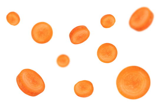 Floating Carrot with Leaves and Round Slices for Healthy Cooking and Nutrition Design on Transparent Background Png
