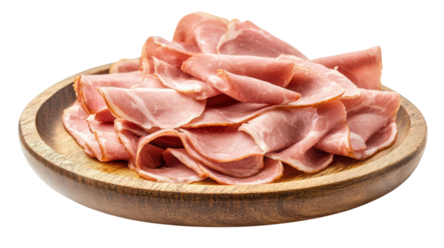 Sliced raw pork meat for charcuterie with transparent background