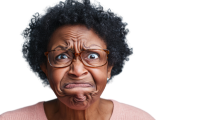 Senior black woman making grimace expressing disgust on transparent background