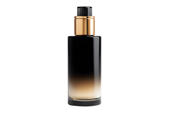 Metallic cosmetic spray bottle black luxurious mockup isolated on cut out PNG or transparent background. For aerosol, foam or deodorant tall or body spray. Cleaning agent hand hygiene liquid soap.