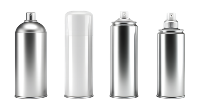 Hand holding aerosol spray can with cap off, ready to dispense product isolated on transparent background