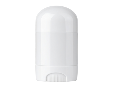 A white, cylindrical deodorant stick with a rounded cap and a textured twisting base is shown upright.