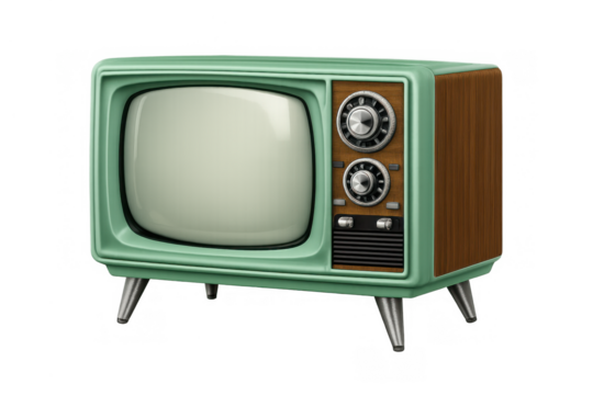 Retro green and wood television, vintage style broadcasting nostalgia, old analog media with blank screen, home entertainment history