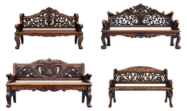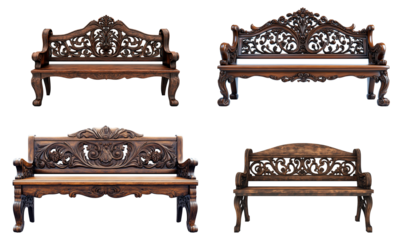 set of Upholstered Bench Isolated on a Clean Transparent Background