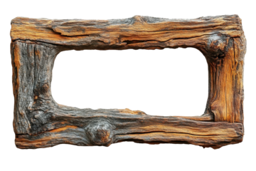 Rustic wooden frame with weathered textures and organic shapes, providing an inviting border to the blank space