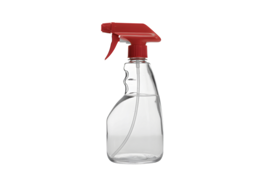 clear spray bottle with red nozzle  . Isolated on transparent background, png