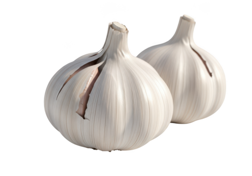 3d icon of two bulbs of fresh garlic isolated on transparent background
