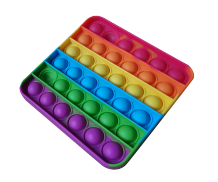 Pop it, Rainbow antistress toy in the shape of a square, isolated on a transparent background with a clipping path
