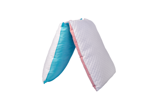 two orthopedic pillows isolated on transparent background, family home comfort concept