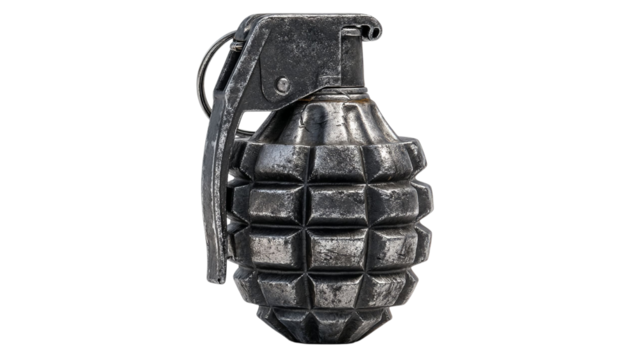 PNG of A detailed close-up of a classic hand grenade, showcasing its metallic texture and intricate design.
