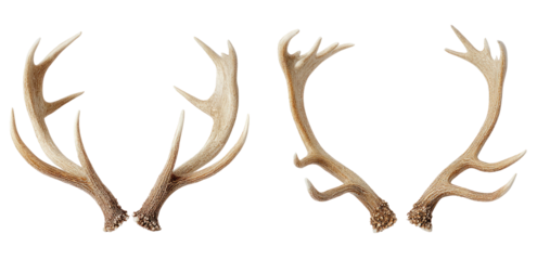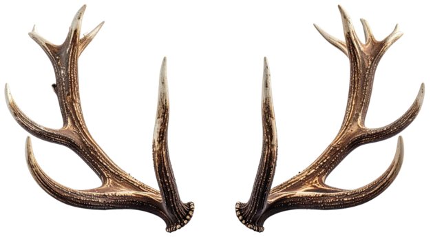 Deer antlers, two pairs, brown texture, isolated