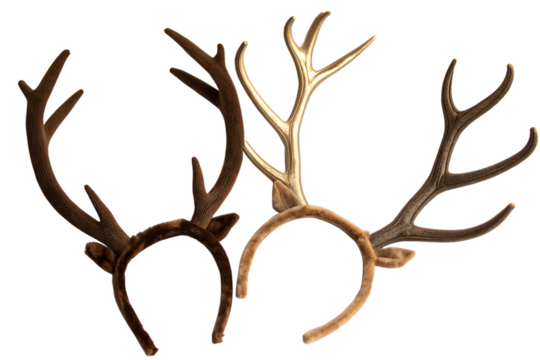 Festive reindeer antler headband with ornaments isolated PNG, Christmas holiday costume accessory on transparent background